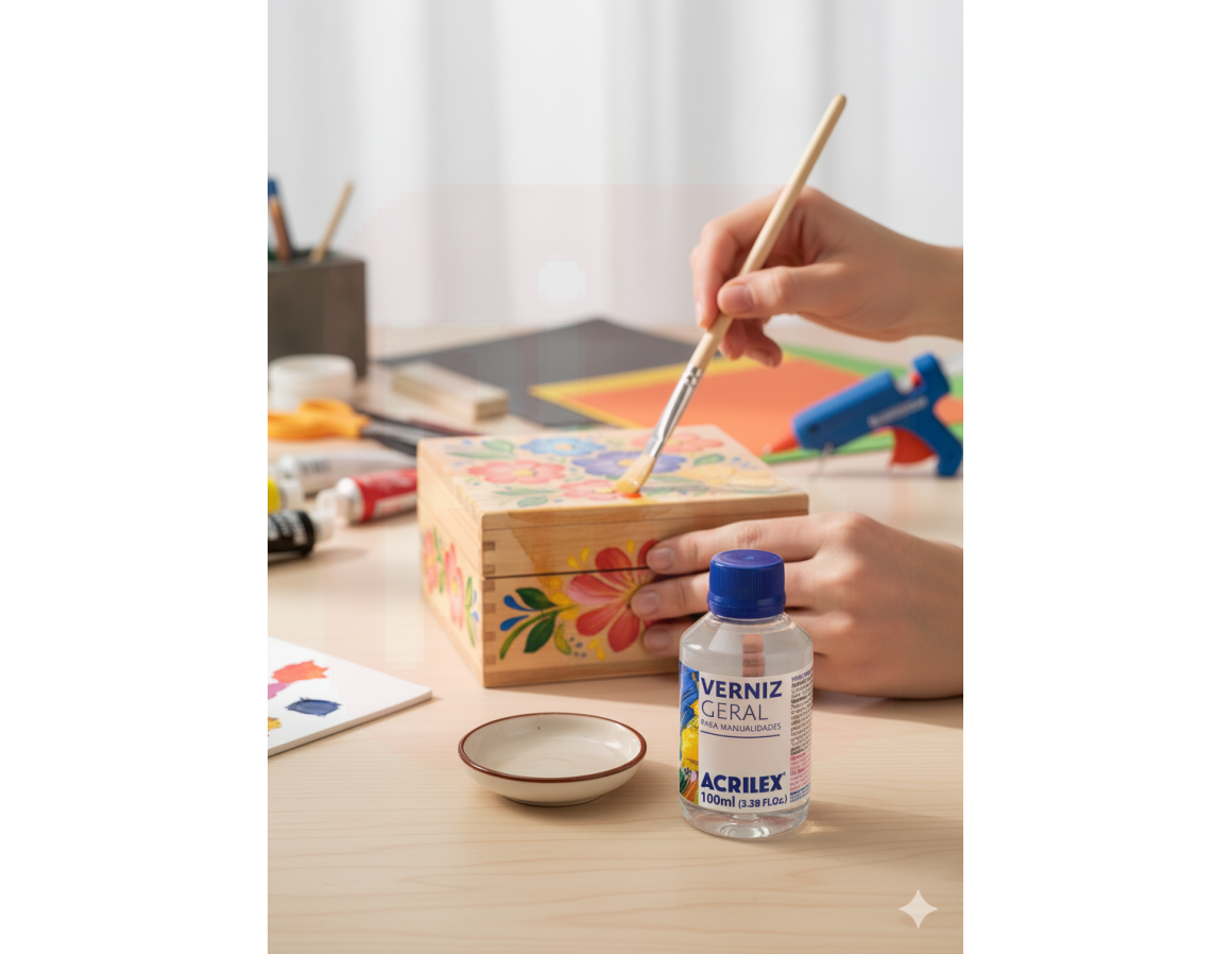 Proteja e realce suas criações com o Verniz Geral 100ml, ideal para dar acabamento brilhante e duradouro em pinturas, desenhos, artesanatos e superfícies diversas. Sua fórmula de secagem rápida forma uma película transparente que realça as cores e protege contra poeira, umidade e desgaste do tempo.