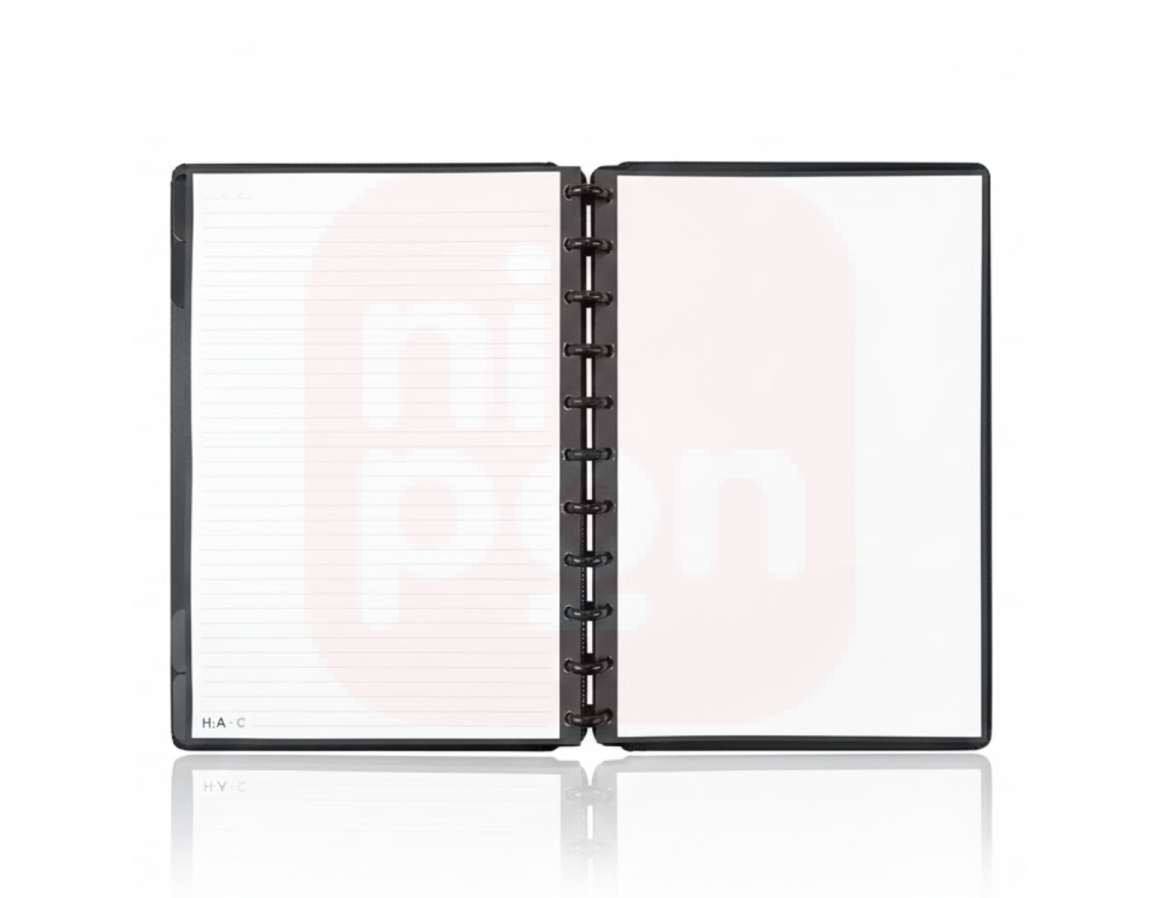 O Caderno Inteligente Black Ink by Alexandre combina estilo moderno, acabamento premium e a praticidade do sistema disc-bound. Com 80 folhas de alta qualidade, é perfeito para anotações, estudos, organização pessoal e profissional. Seu design elegante em preto garante um visual sofisticado e versátil para qualquer rotina.